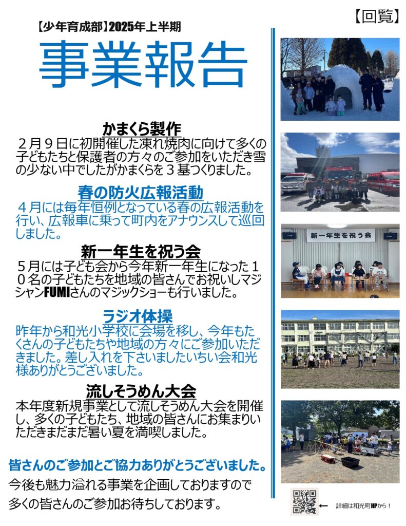 2025.09.16 活動報告 少年育成部2025上半期活動報告 wakou-eniwa 少年育成部2025上半期活動報告になります今後も魅力溢れる事業を企画していますのでぜひお楽しみに! 2025上半期事業報告ダウンロード ABOUT ME
